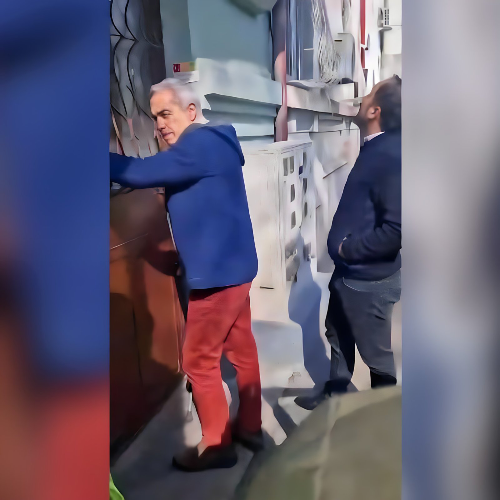 „O singură chestie, aş vrea să mă duc la o toaletă, se poate?”, întreabă Georgescu. Poliţistul îi răspunde afirmativ, precizând însă că va merge cu escortă, fără şofer. În imagini nu apare nicio tentativă de imobilizare, iar Poliţia subliniază că nu a existat niciun moment în care Georgescu să fie atins sau bruscat.