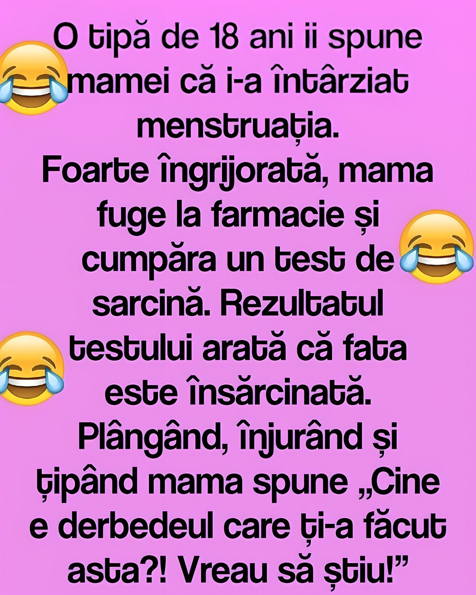 O discuție aparent banală între o adolescentă de 18 ani și părinții ei s-a transformat într-un episod demn de un scenariu de film. Totul a început când tânăra le-a mărturisit că nu i-a venit menstruația. Alarmată, mama a fugit imediat la farmacie pentru a cumpăra un test de sarcină, care a confirmat bănuielile: fata era însărcinată.
